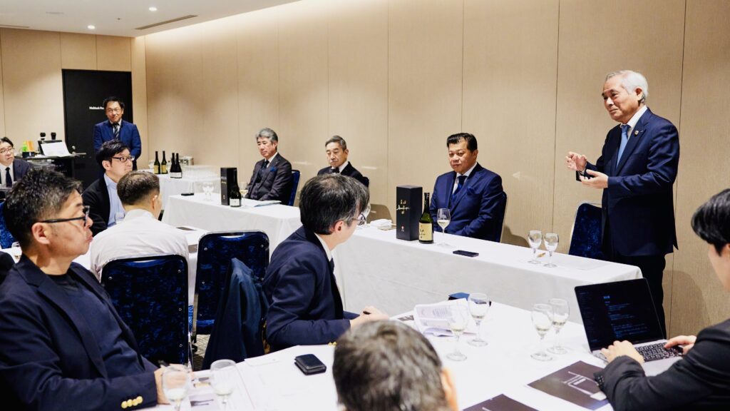 発売に先立ち、お酒に詳しいメディアの方々とご一緒に、試飲お伝えの機会を設けました。月の桂・増田德兵衞協会代表、黒龍・水野直人協会副代表、ブレンダー・興水精一協会顧問とともに、この酒ができた経緯や、香り味わいの特徴などをお伝えし、ご質問ご意見を交換させていただきました。世界へ日本酒が価値化される為に必要なことは?等お詳しい方々のご意見いただくなど、試飲とともに有意義な交流が図れました。
